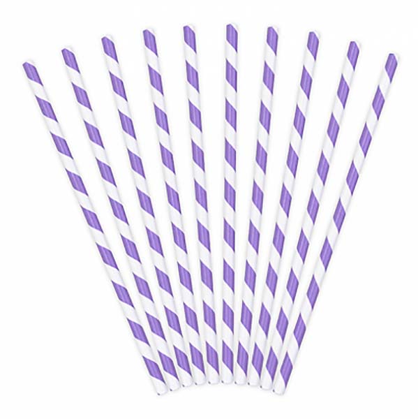 Καλαμάκια χάρτινα Λιλά ριγέ (10 τεμ)