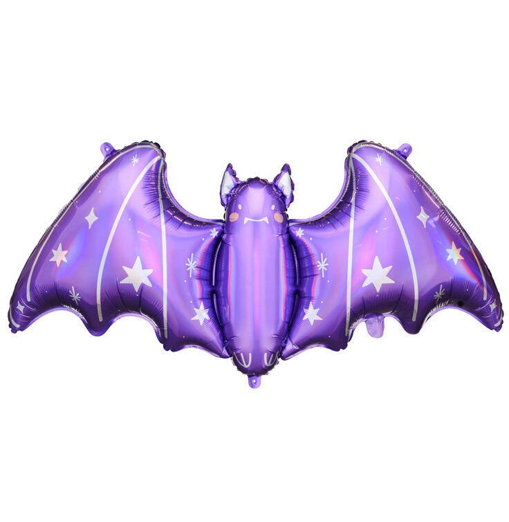 Εντυπωσιακό, γυαλιστερό μπαλόνι μοβ Νυχτερίδα με ασημί λεπτομέρειες αστέρια. Δημιούργησε μία διακόσμηση Halloween που θα μαγνητίσει τα βλέμματα!