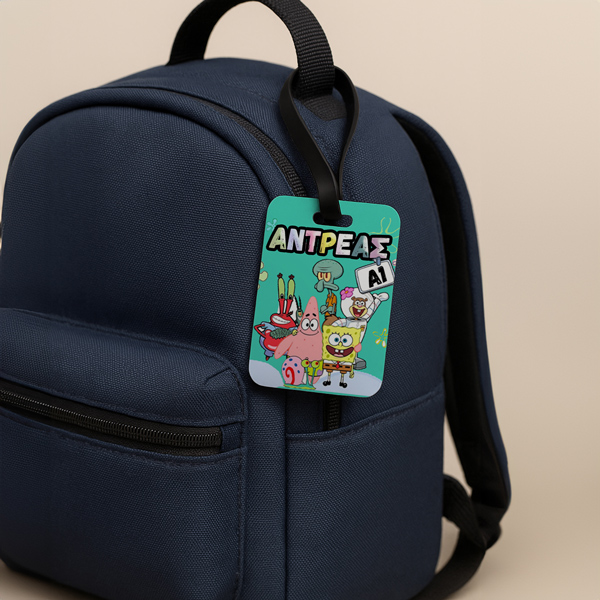 Bag Tag με θέμα Μπομπ Σφουγγαράκης, ιδανικό για σχολικές τσάντες, βαλίτσες ή σακίδια. Το Bag Tag βοηθά στον εύκολο εντοπισμό και δίνει στυλ με αγαπημένα σχέδια.