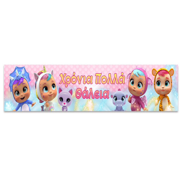 Banner πάρτυ με θέμα τα αξιαγάπητα Κλαψουλίνια και τυπωμένο το όνομα της επιλογής σου! Μπορεί να χρησιμοποιηθεί ως runner για τη διακόσμηση του τραπεζιού ή ως banner στην πόρτα ή τον τοίχο.