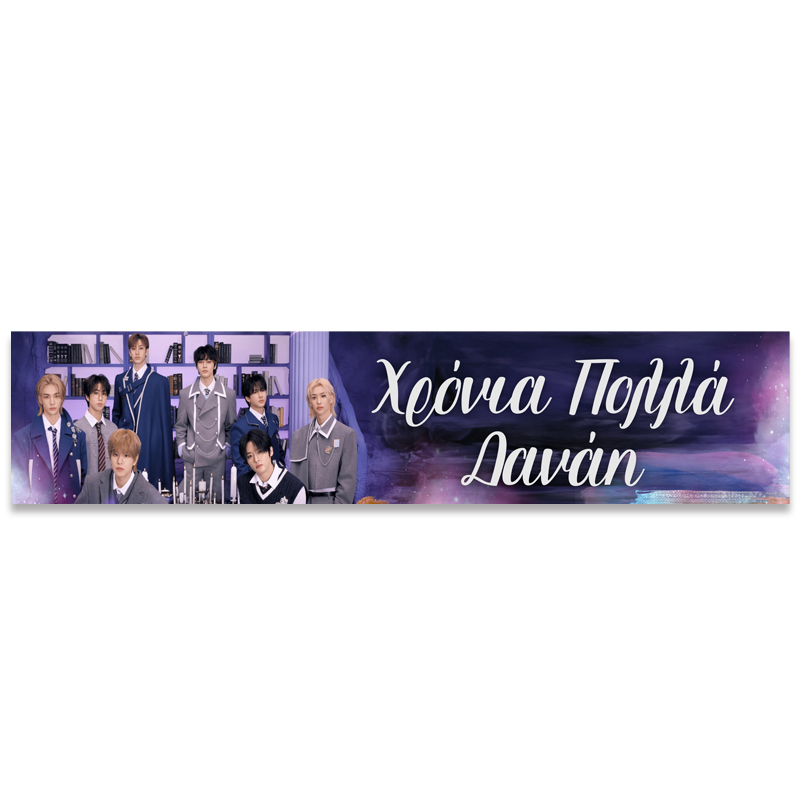 Banner πάρτυ με θέμα Stray Kids και τυπωμένο το όνομα της επιλογής σας! Μπορεί να χρησιμοποιηθεί ως runner για τη διακόσμηση του τραπεζιού ή ως banner στην πόρτα ή τον τοίχο.