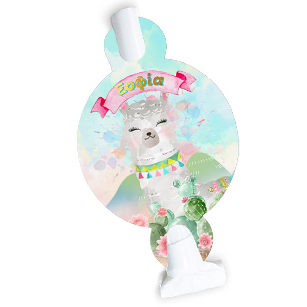 Προσωποποιημένα Blowouts με θέμα Λάμα & Κάκτος, για να μοιράσετε στους καλεσμένους του πάρτυ σας και να τους βάλετε σε γιορτινή διάθεση!