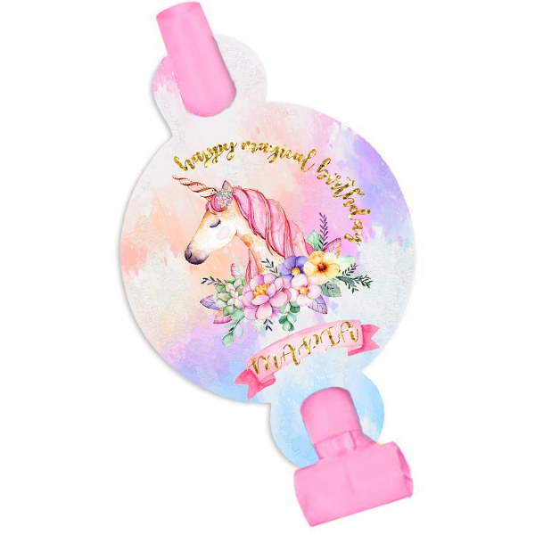 Προσωποποιημένα Blowouts με θέμα μαγικό Μονόκερο, για να μοιράσετε στους καλεσμένους του πάρτυ σας και να τους βάλετε σε γιορτινή διάθεση!