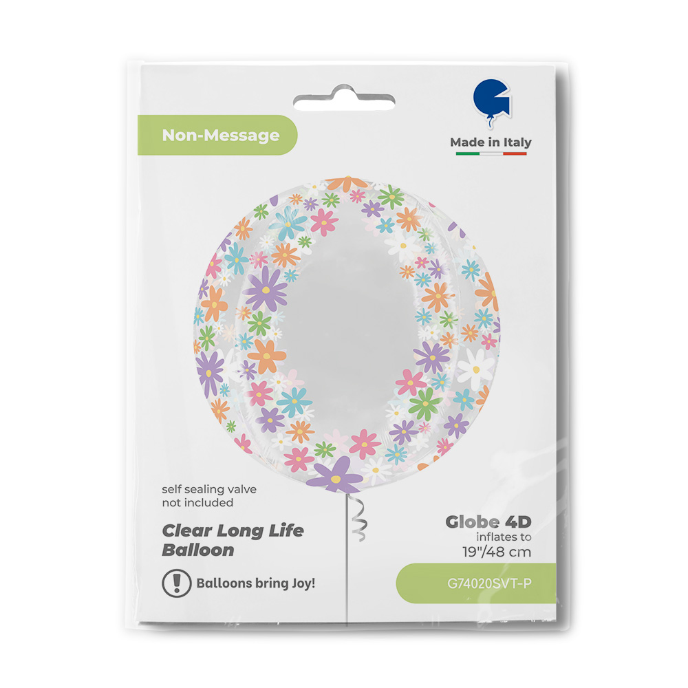 Εντυπωσιακό ολοστρόγγυλο Globe 4D μπαλόνι διάφανο με σχέδιο πολύχρωμες μαργαρίτες, για να διακοσμήσεις το πάρτυ της μικρούλα σου!
