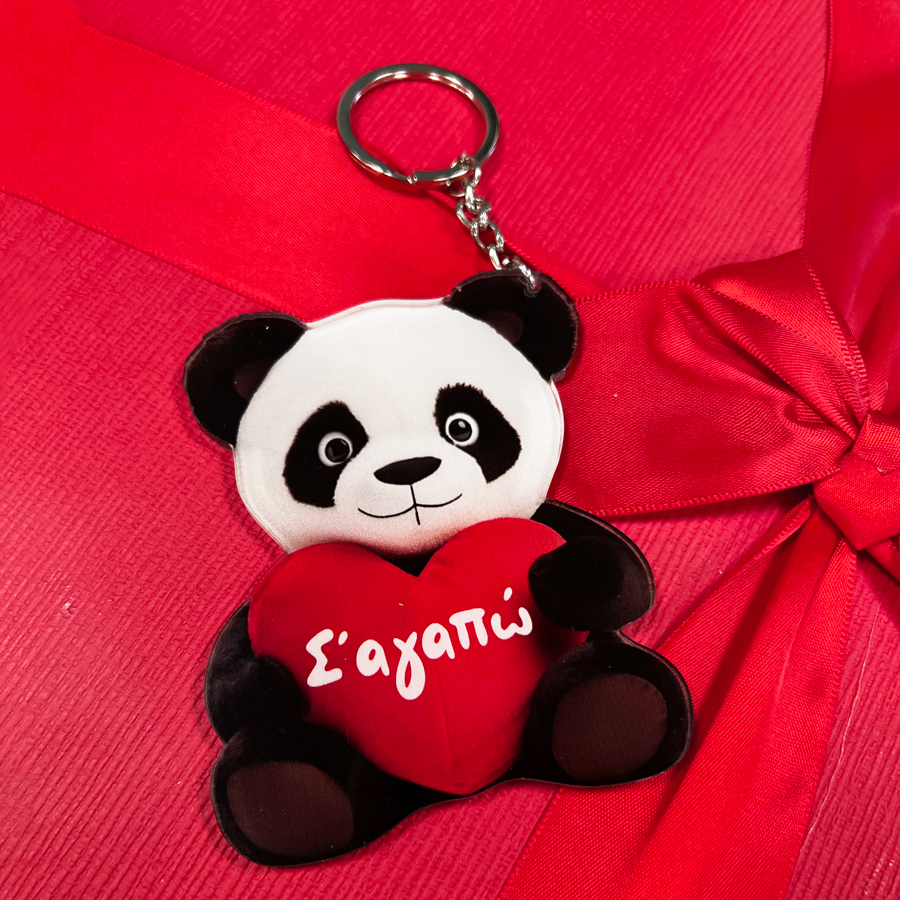 Μπρελόκ plexiglass σε σχήμα αρκουδάκι panda με αφιέρωση αγάπης! Ιδανική επιλογή δώρου για τον Άγιο Βαλεντίνο ή την επέτειο!