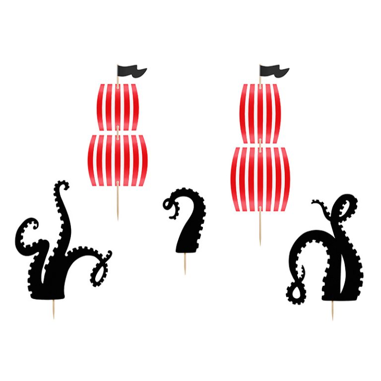 Διακοσμήστε εντυπωσιακά την τούρτα και τα φαγητά του πάρτι με topper σε θέμα πειρατικές σημαίες και πλοκάμια!
