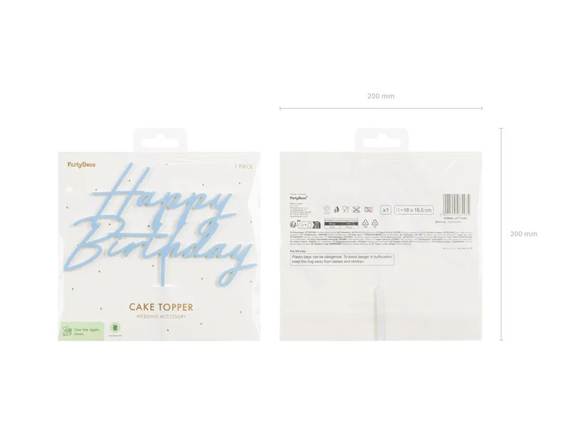 Topper Τούρτας Happy Birthday Απαλό Γαλάζιο
