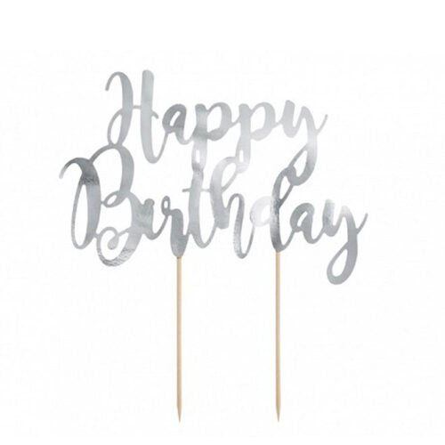 Topper τούρτας Happy Birthday Ασημί