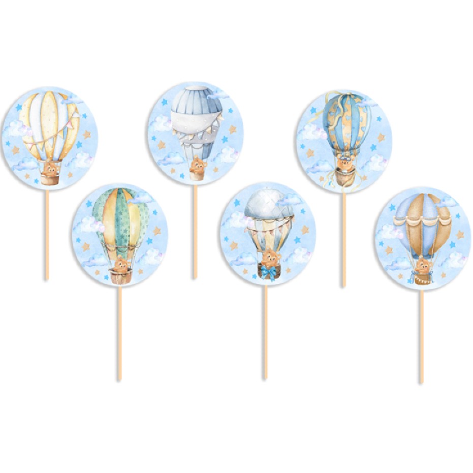 Topper για να στολίσετε τα ζαχαρωτά και τα cupcake του μπουφέ με το Αερόστατο σε 6 διαφορετικά σχέδια!