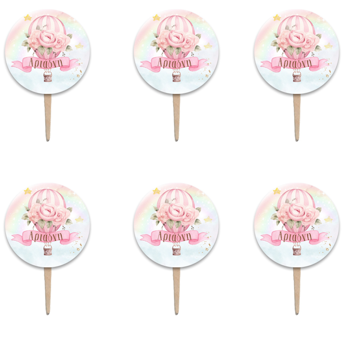 Topper Cupcake Αερόστατο κορίτσι (6 τεμ)
