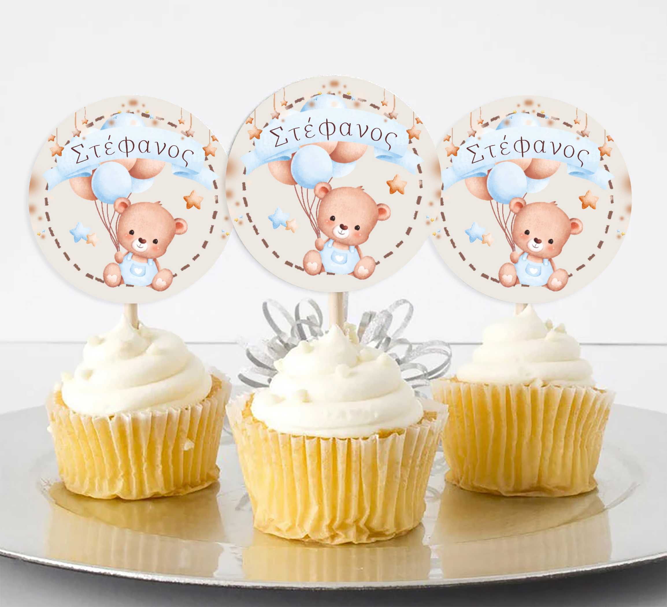 Topper για να στολίσετε τα ζαχαρωτά και τα cupcake του μπουφέ με θέμα χαριτωμένο Αρκουδάκι!