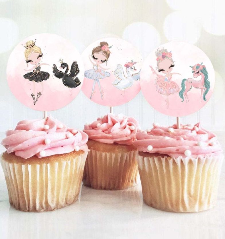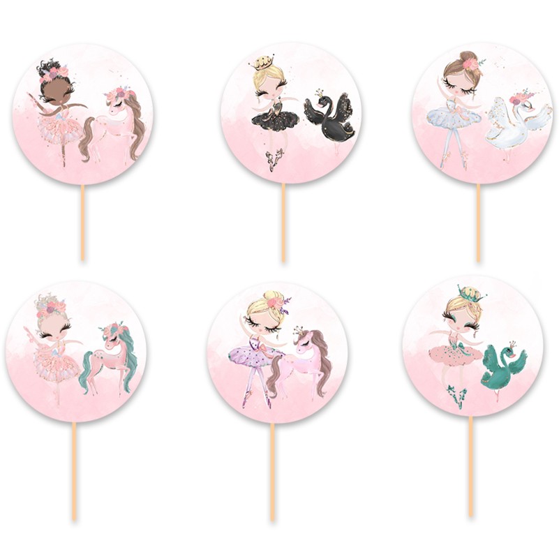 Topper-Οδοντογλυφίδες για να στολίσετε τα ζαχαρωτά και τα cupcake του μπουφέ με θέμα Μπαλαρίνα και ζωάκια.