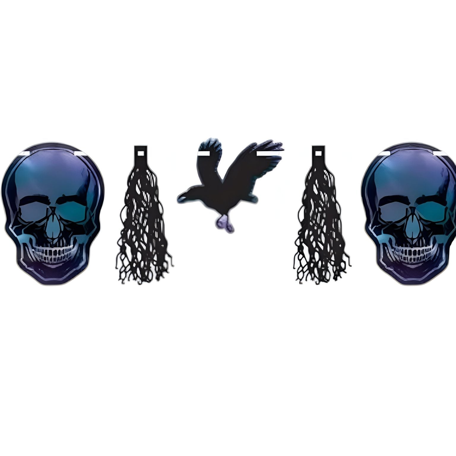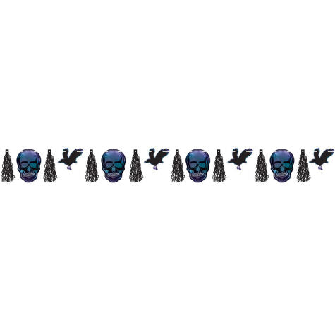 Γιρλάντα με μαύρες φούντες και χάρτινα κοπτικά Νεκροκεφαλές και Κοράκια, για τη διακόσμηση του Halloween πάρτυ!
