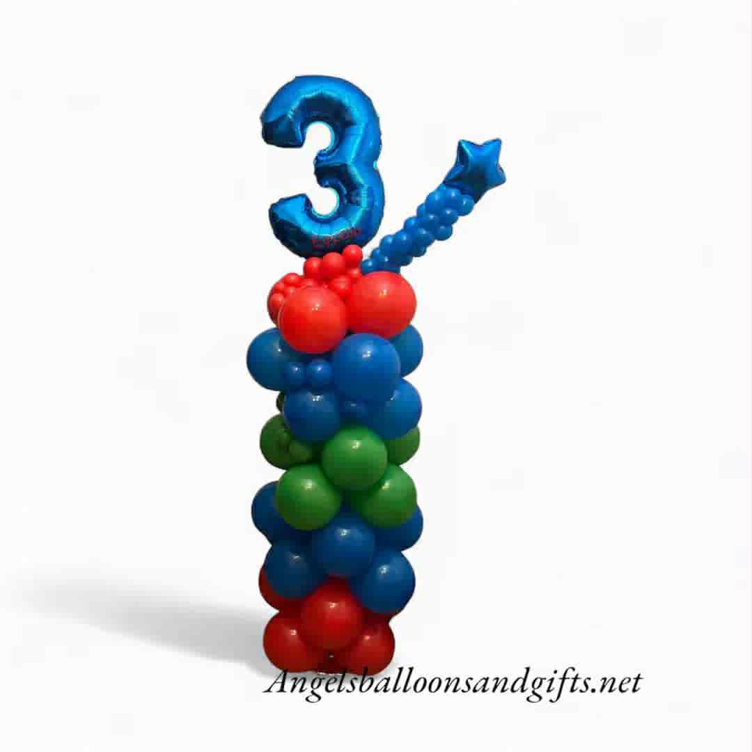 Μπαλονοκατασκευή (στήλη μπαλονιών) με θεματικό foil μπαλόνι (αριθμός 3) και συνδυασμό μπαλονιών σε τρία χρώματα!