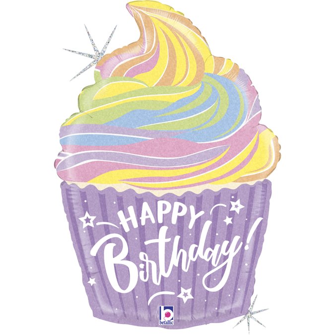 Μεγάλο, σχηματικό, foil μπαλόνι σε παστέλ χρώματα Happy Birthday