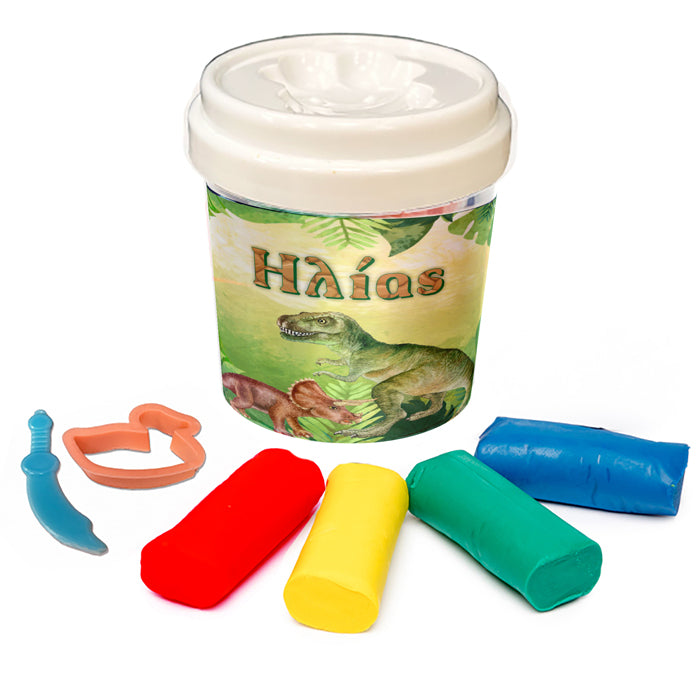 Βαζάκι με πλαστελίνες και κουπ-πατ και θέμα Δεινσόσαυροι! Ιδανικό για δωράκια στους μικρούς καλεσμένους του πάρτυ: το πλαστοζυμαράκι θα τους χαρίσει ατελείωτες ώρες χαράς και δημιουργίας!