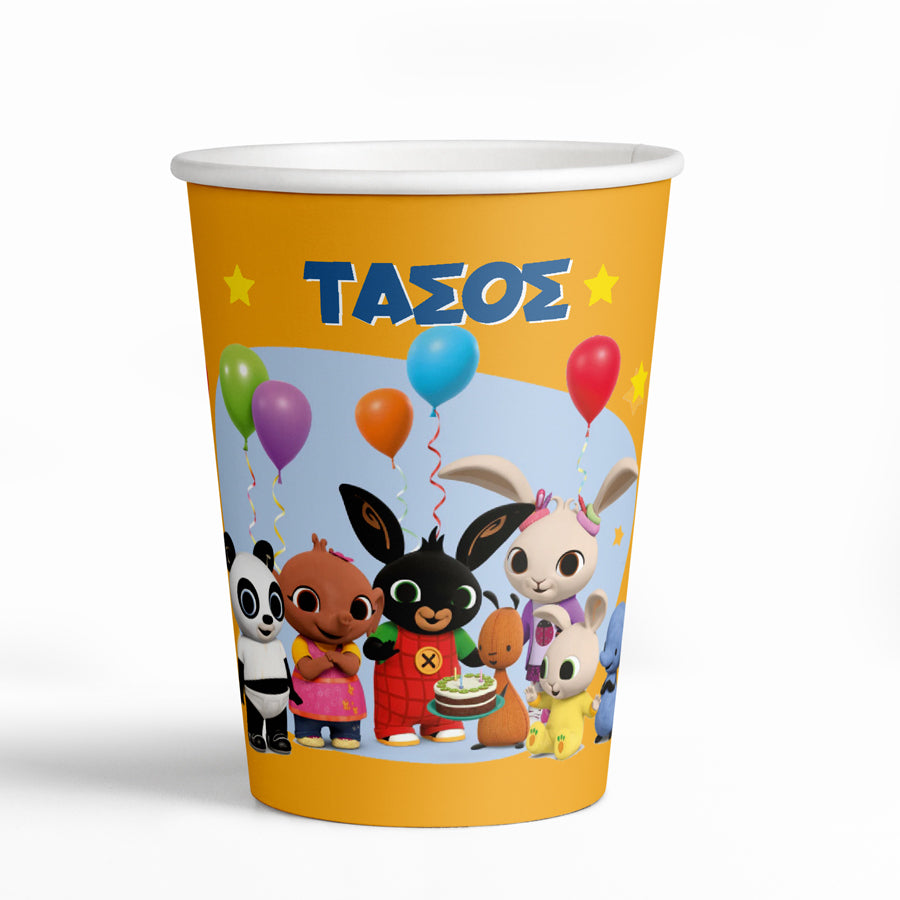 Ποτηράκια με το όνομα της επιλογής σας τυπωμένο επάνω και θέμα Bing για να κεράσετε τους καλεσμένους σας στο τραπέζι του πάρτυ!
