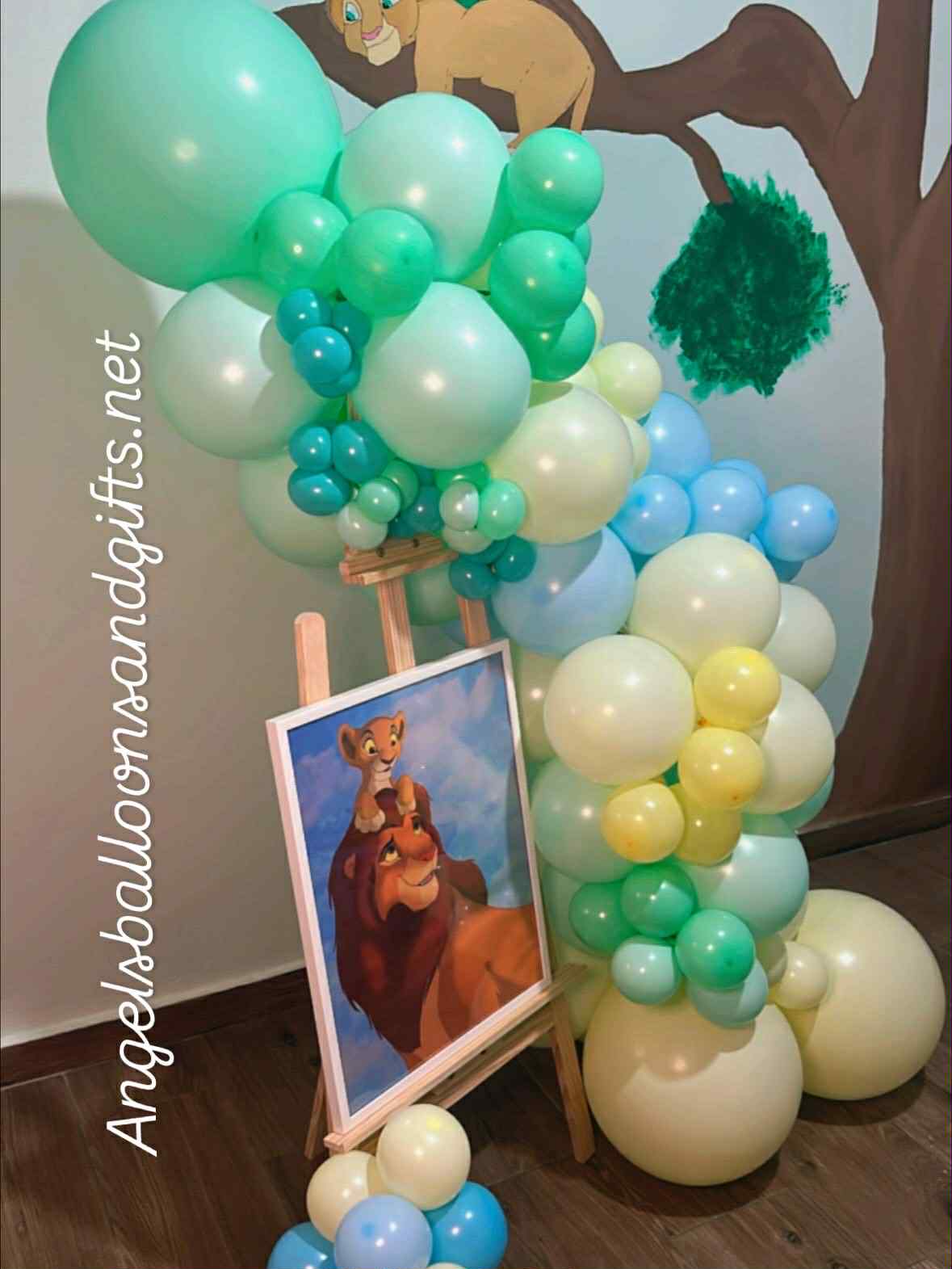 (μπαλόνια + καβαλέτο + εκτύπωση Lion King + στήσιμο):