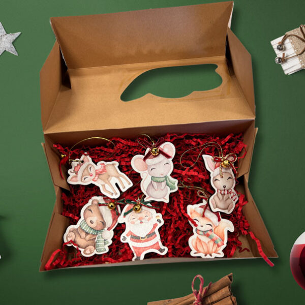 Χριστουγεννιάτικο κουτί με 6 στολίδια ζωάκια
