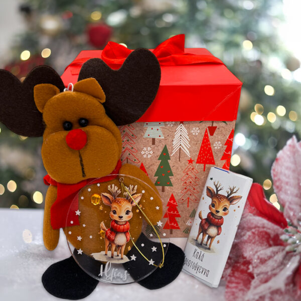 Χριστουγεννιάτικο κουτί με δώρα – Ελαφάκι λούτρινο